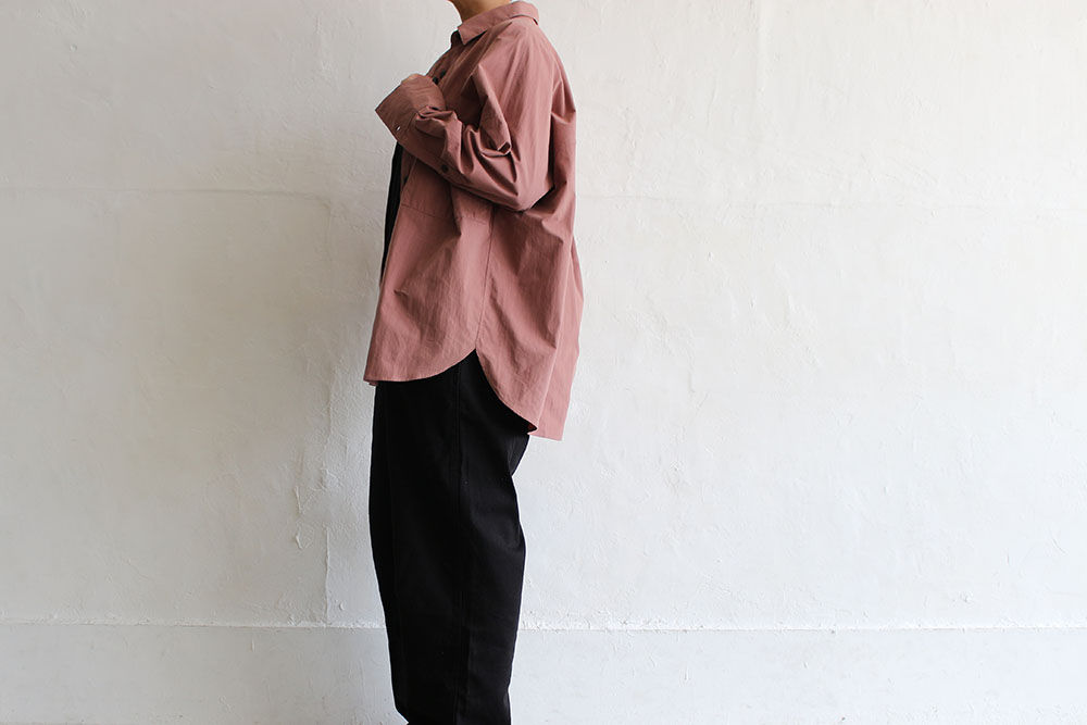 高密度な織りのハリ感のある生地のシャツなので