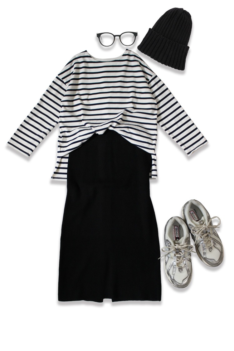 ニット帽にスニーカーでスポーティーに仕上げたデイリースタイル